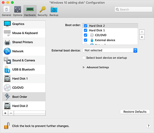 - Select "Boot Drive" and "Installation Drive" as the physical HDD attached to the VM.