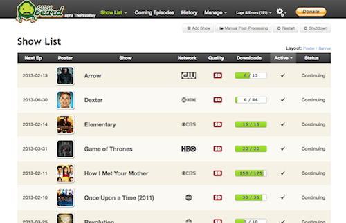 Here's a litte picture of what Sickbeard might look like after adding a couple of series: