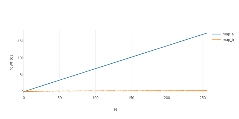 Complexity (total rewrites) of applying “map” N times to a list of 4 elements