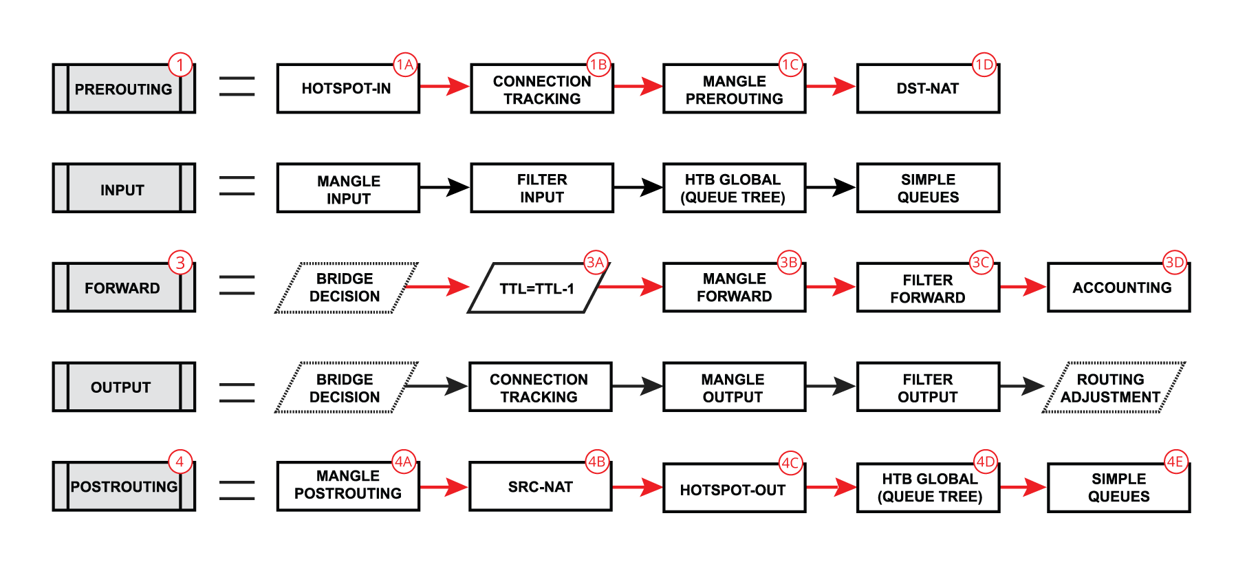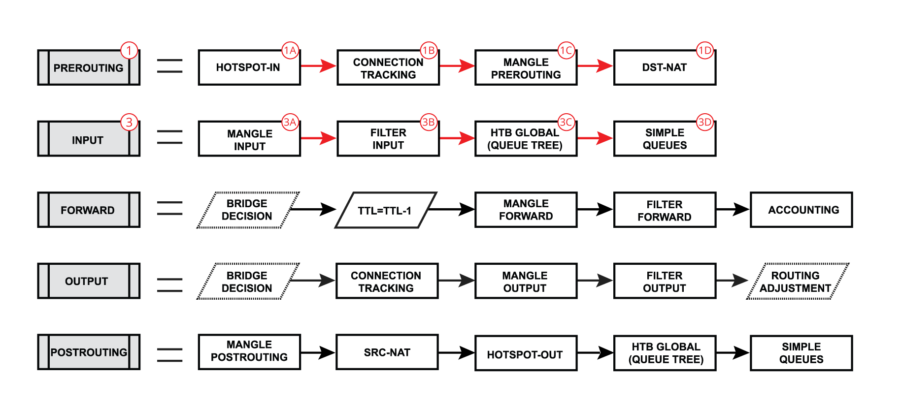 Multi-WAN configuration: During this stage, we will mark and sort the required connections into routing tables. This involves identifying and classifying traffic to ensure that it is routed through the correct ISP, based on criteria such as source or destination addresses.