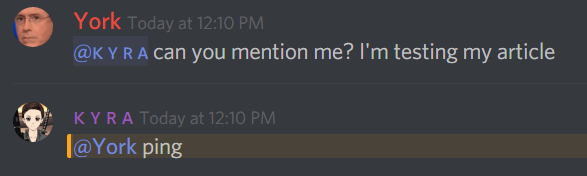 client.login("SuperSecretBotTokenHere");Now, just get someone to mention you!