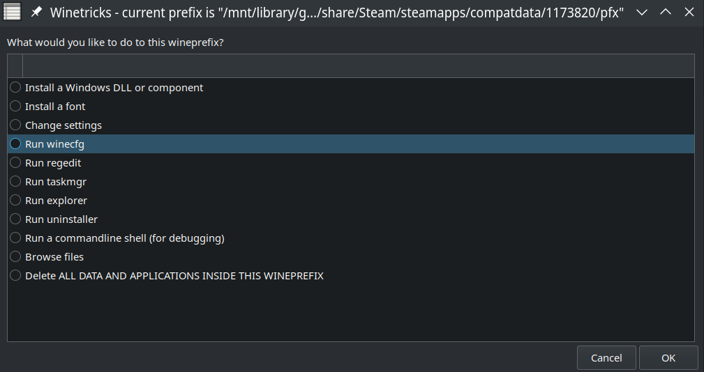 - select the "Run winecfg" option and hit "OK"