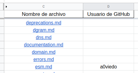 Esta es una guía para colaborar con el equipo de traducción de Node.js. Para dividirse tareas utilizaremos esta spreadsheet dónde cada vez que empiecen con un archivo dentro de Crowdin deben agregar su usuario de GitHub al costado.