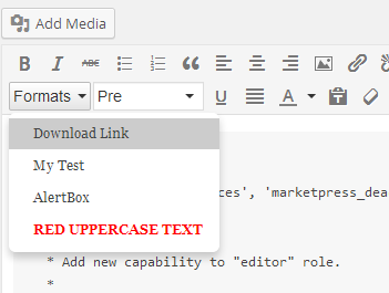 Now is the last point, that you include the custom css for this formats, via hook mce_css.