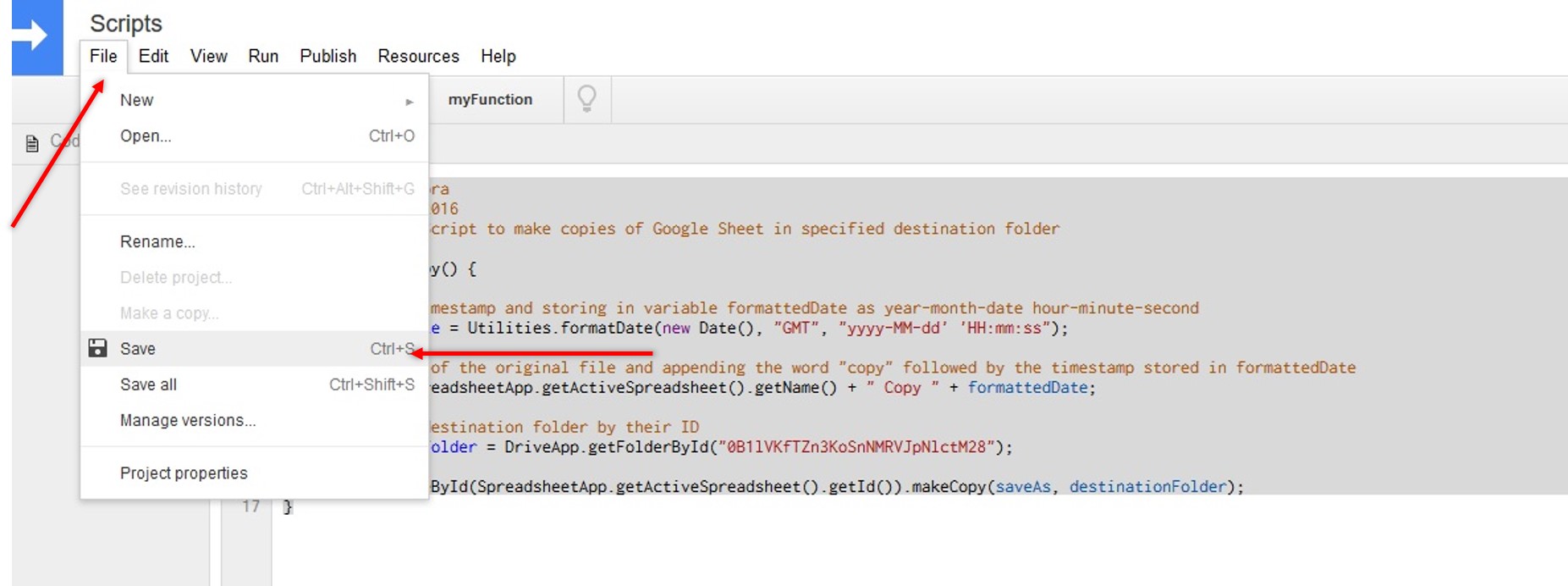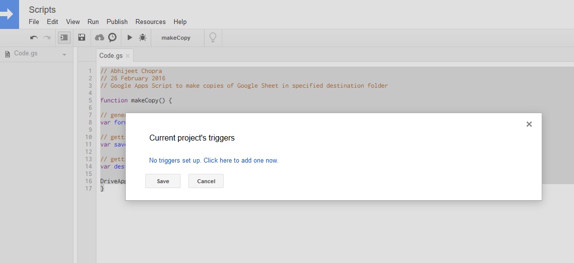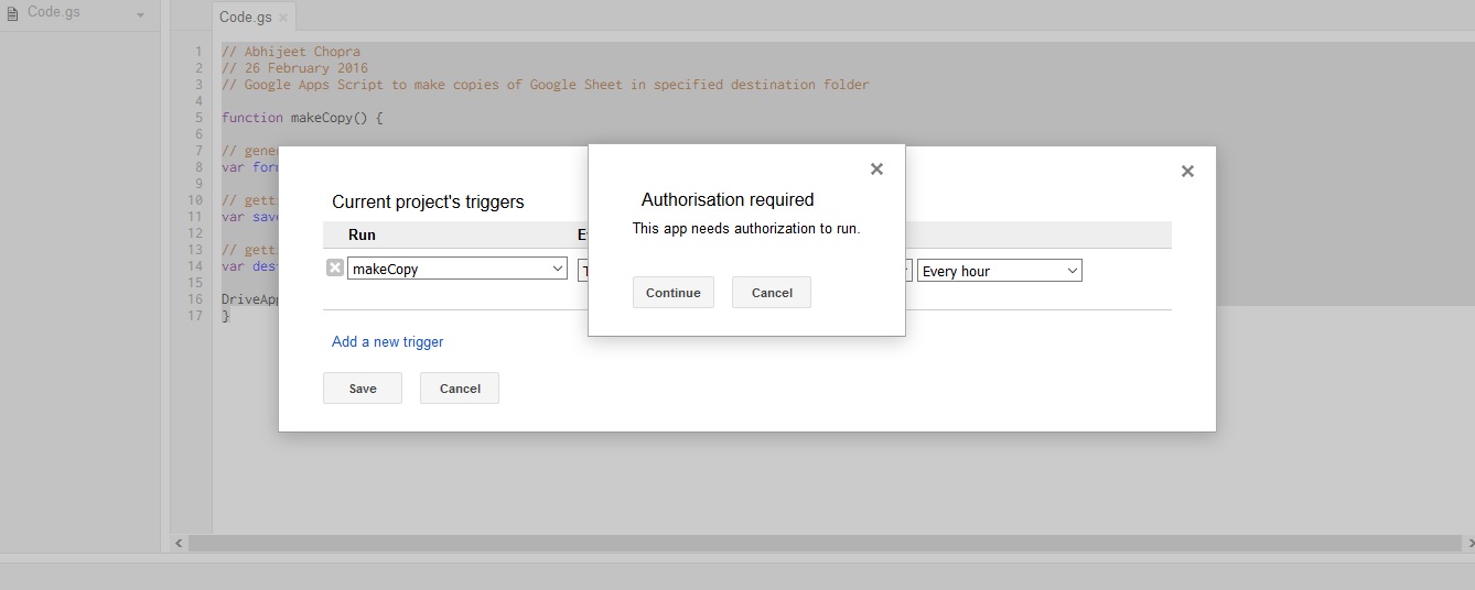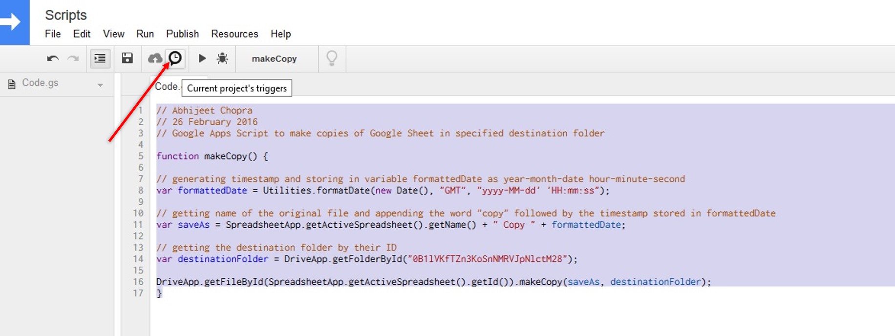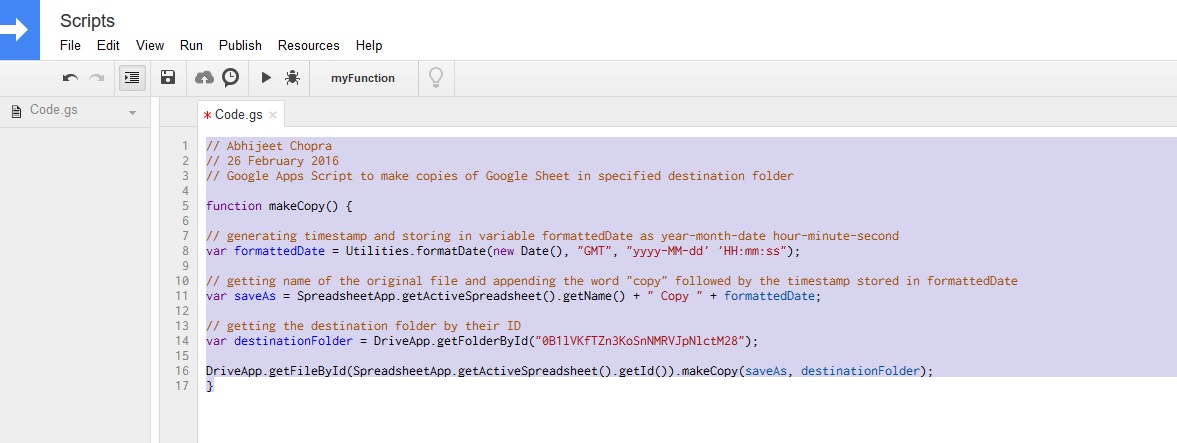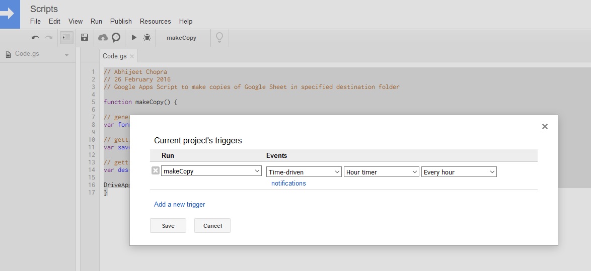 Create copies of the Google Sheet in the desired destination folder automatically at set intervals.
