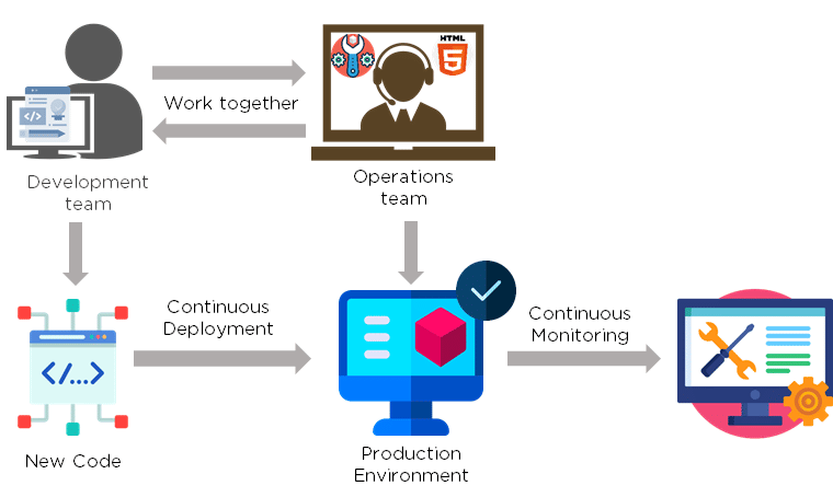 Sehingga menghasilkan pengembangan software yang berkelanjutan (continuous development), testing, integration, deployment, serta melakukan monitoring terhadap lifecycle yang sedang berlangsung.