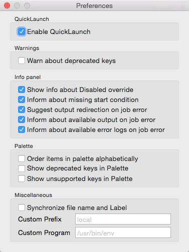 In addition, I found LaunchControl that enables us to manage lanuchd and edit its configuration files with GUI.