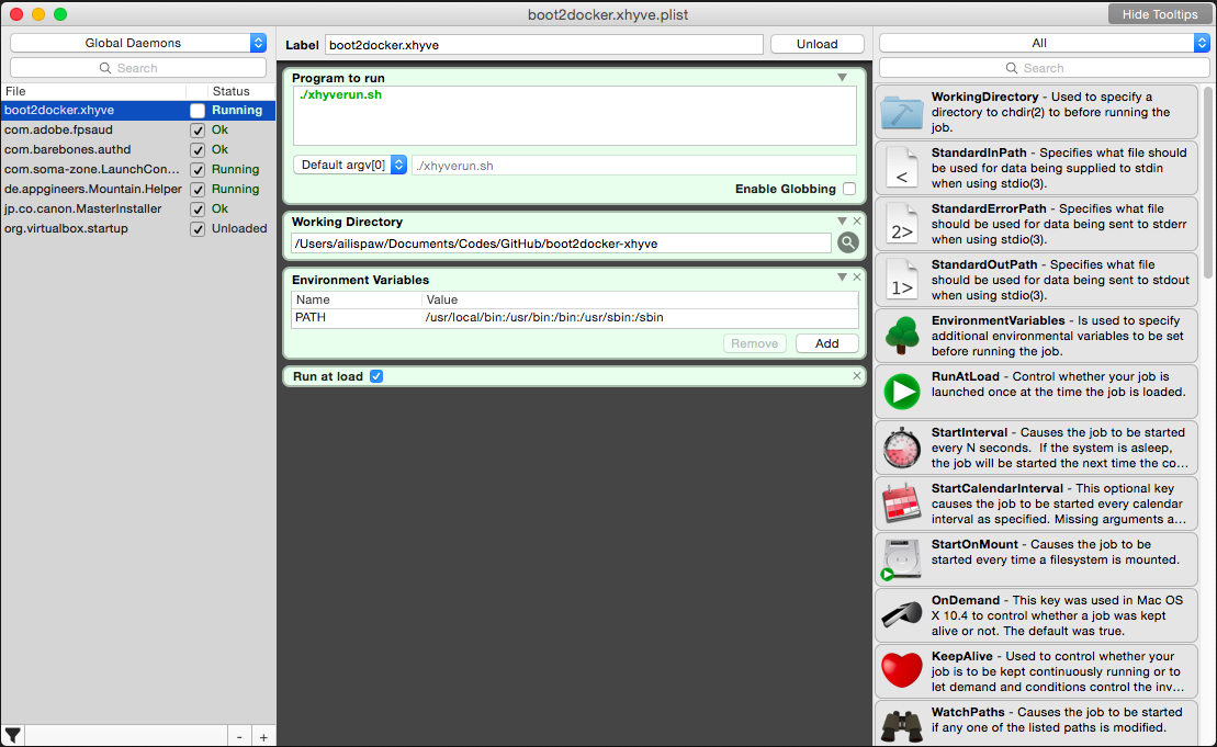 LaunchControl.appand selectGlobal Daemonsagain to give it the root privilege at the first time after booting Mac OS X.