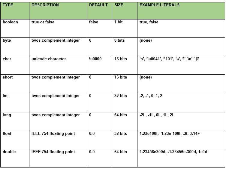 Java = statically typed and a strongly typed language - each type of data is predefined as part of the programming language - all constants or variables defined for a given program must be described with one of the data types