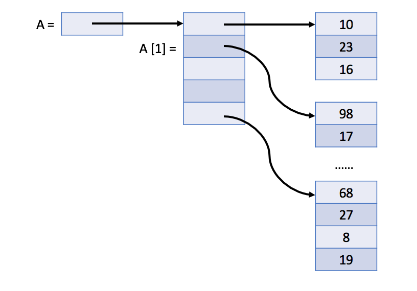 The picture below shows the actual structure of a two-dimensional array A in Java: