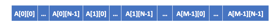 A[i][j] equals to A[i * N + j] if we defined A as a one-dimensional array which also contains M * N elements.