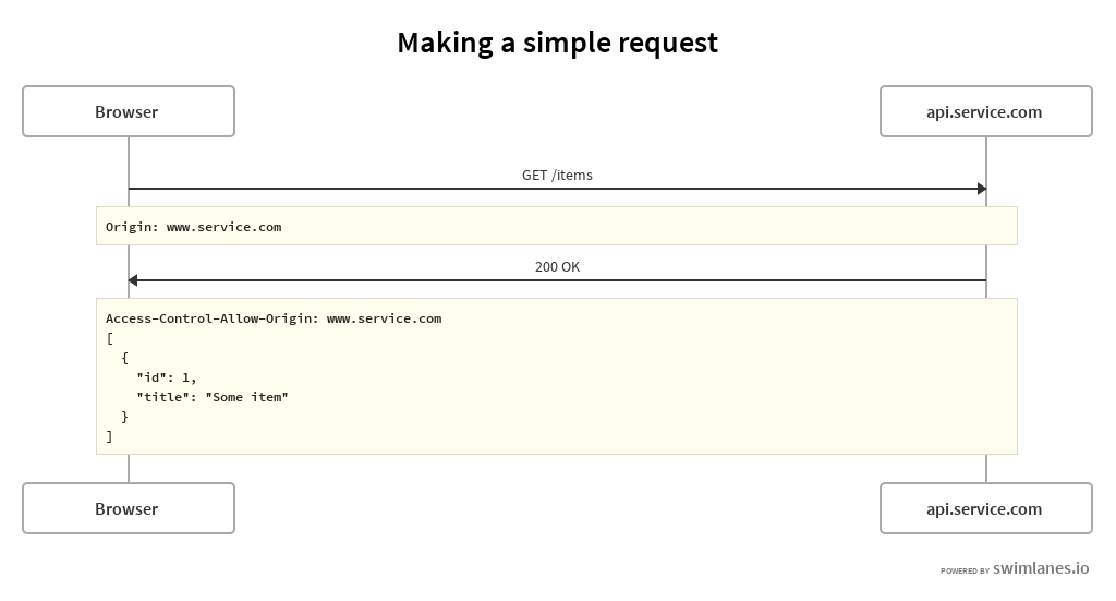 For other requests, the browser will send a preflight request, asking the domain what is the policy for the given resource.