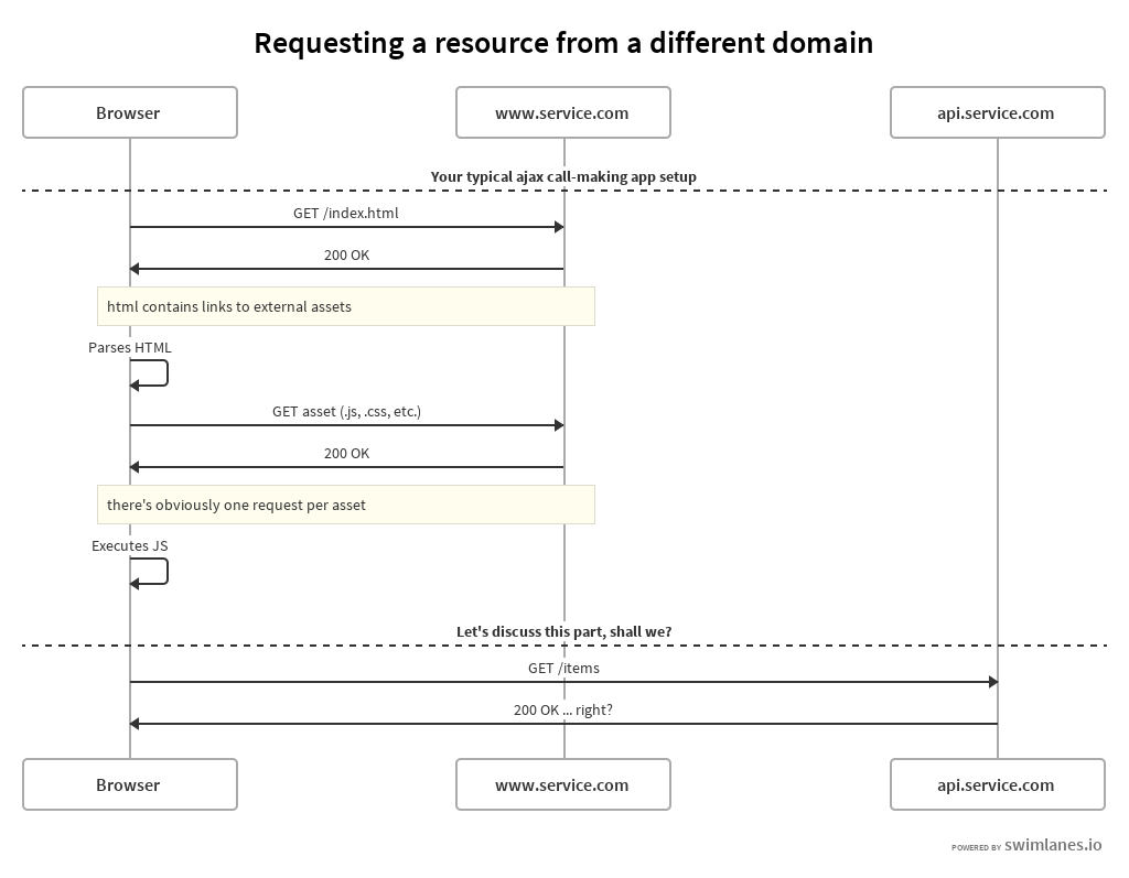 Note that a domain is defined by the following pattern: protocol://domain:port. Therefore, http://api.service.com,http*s*://api.service.com, http://*www*.service.com and http://api.service.com:*8000* are all different domains.