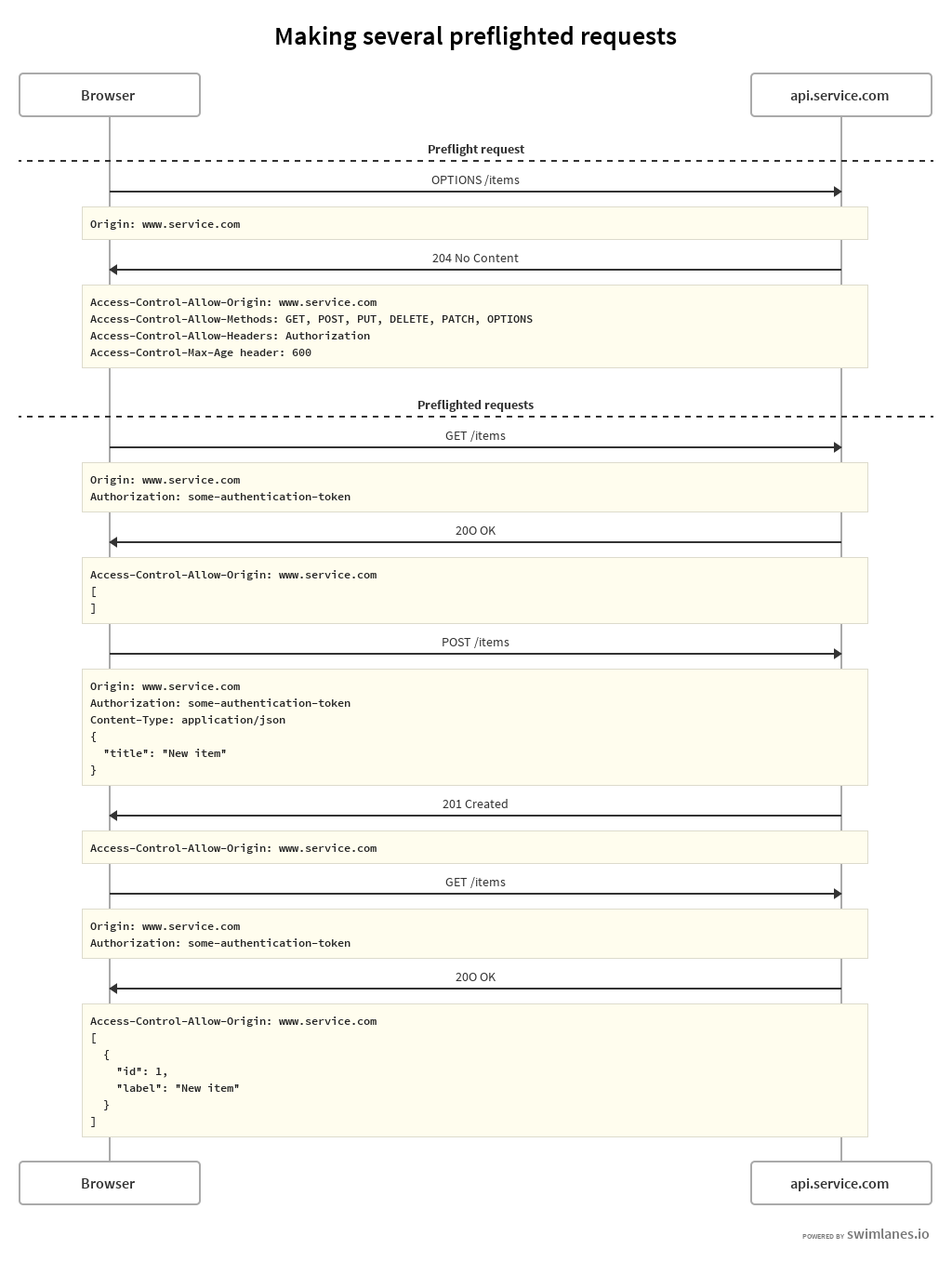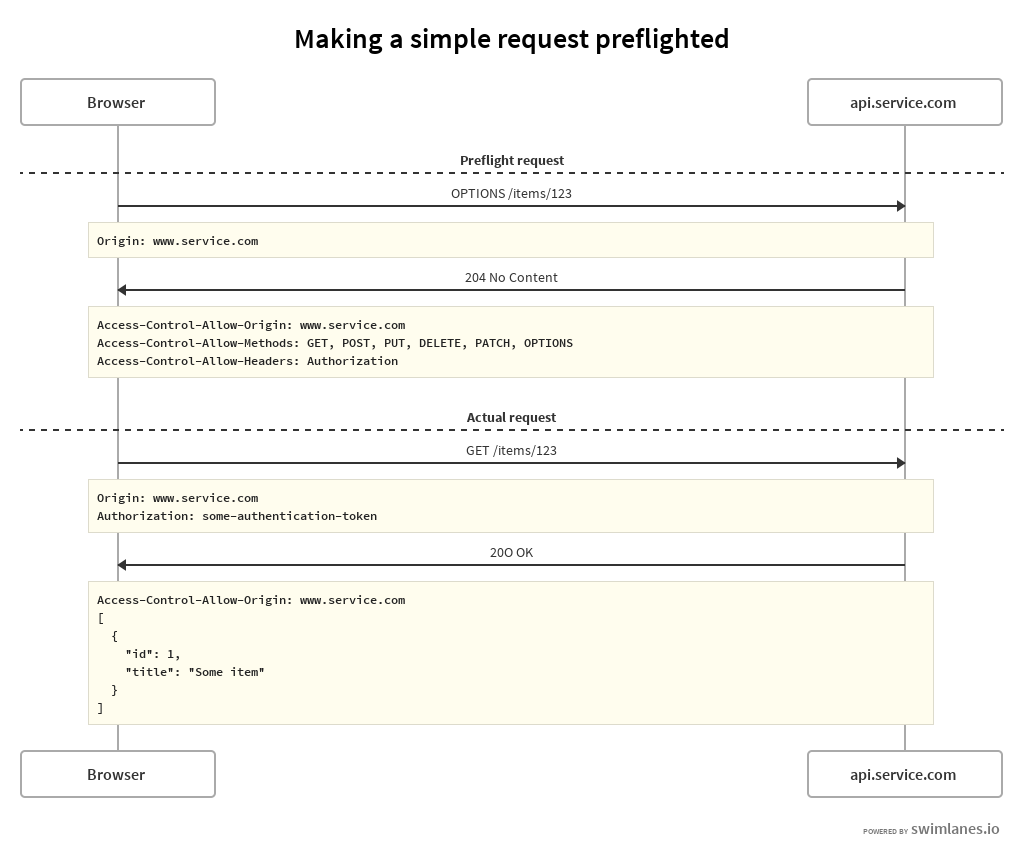 Firstly let's add some authentication to our previous GET request through an Authorization header. Since this is a non-standard header, the browser is going to preflight it: