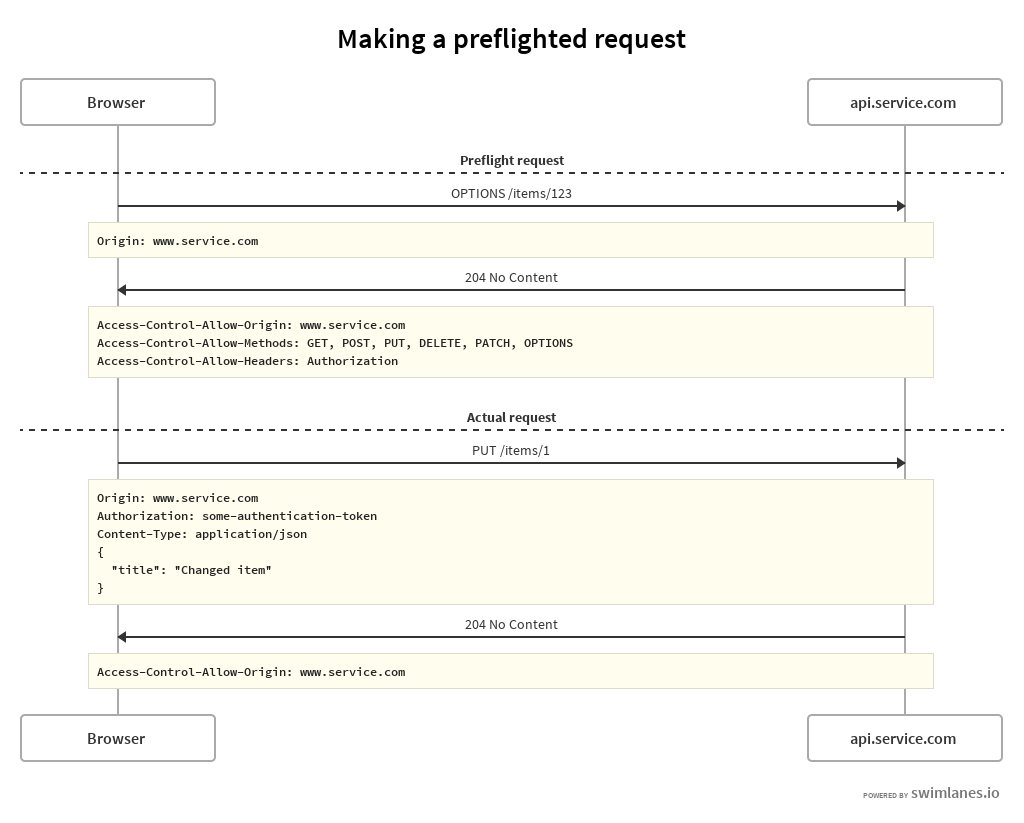 Note that a preflight request is basically the same as the actual request, except that