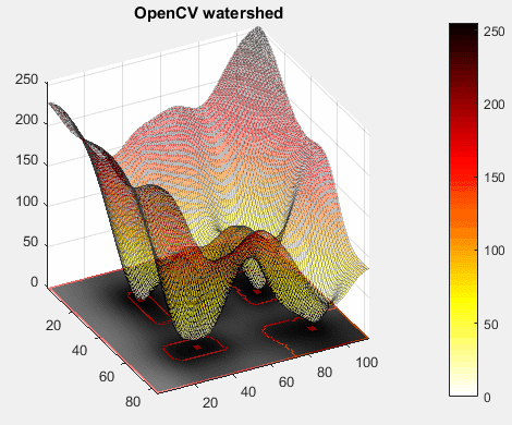 watershed: MATLAB vs. OpenCV