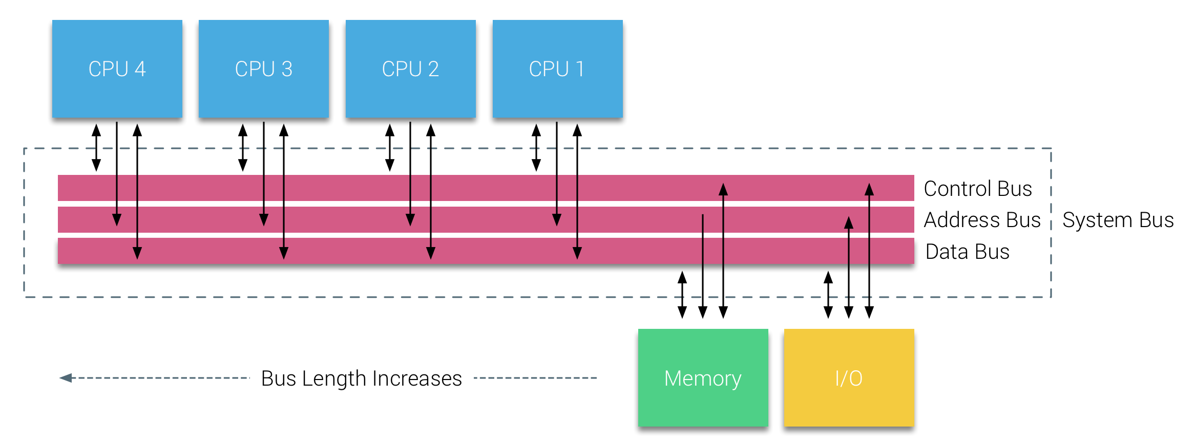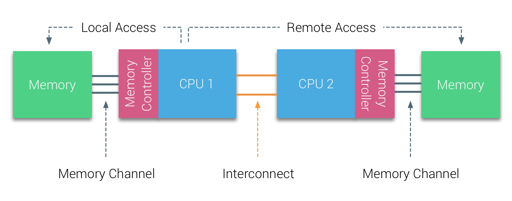 Historically, all memory on x86 architectures were equally accessibly by all CPUs on the system. This is an effective implementation, but there's increased bandwidth on the bus, and the more CPUs you have, the further away from the memory it is. This layout is called Uniform Memory Access.
