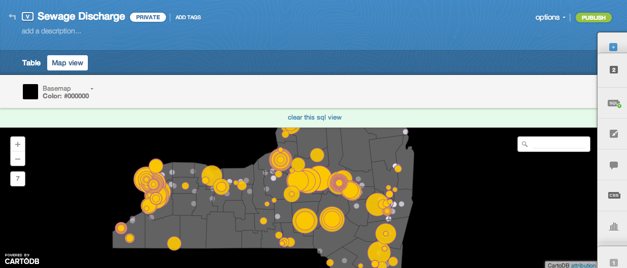 - Write data with SQL using the dashboard or API (see documentation.cartodb.com)