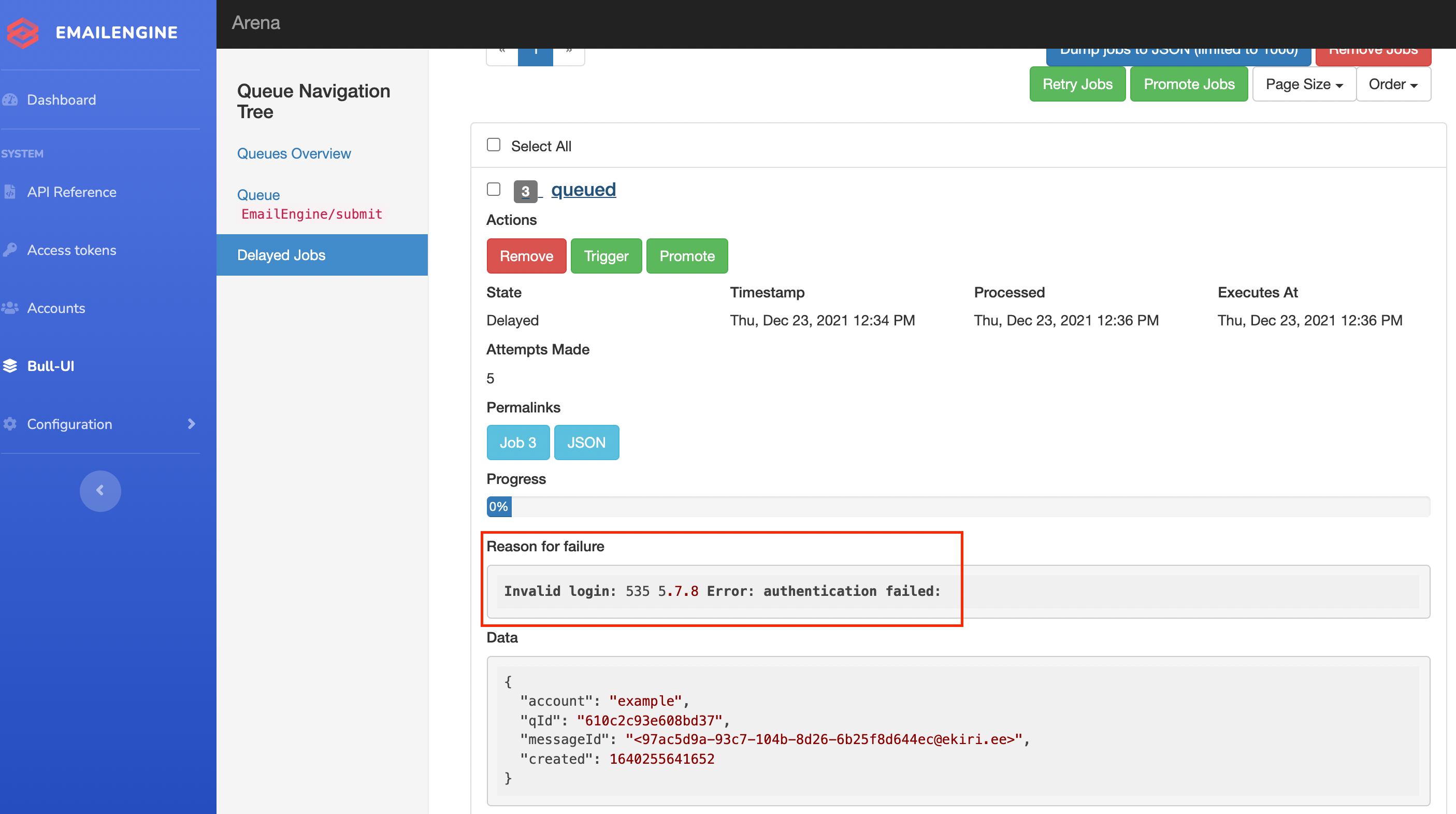 messageFailedandmessageSentwebhook notifications to see if EmailEngine was able to pass the message over to MTA or not