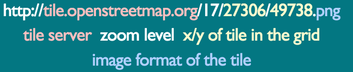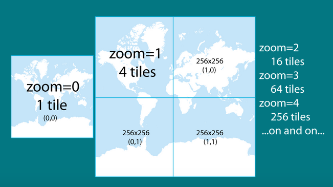 The dimensions are 256x256 pixels and organized based on coordinates (x,y) and zoom levels (z).