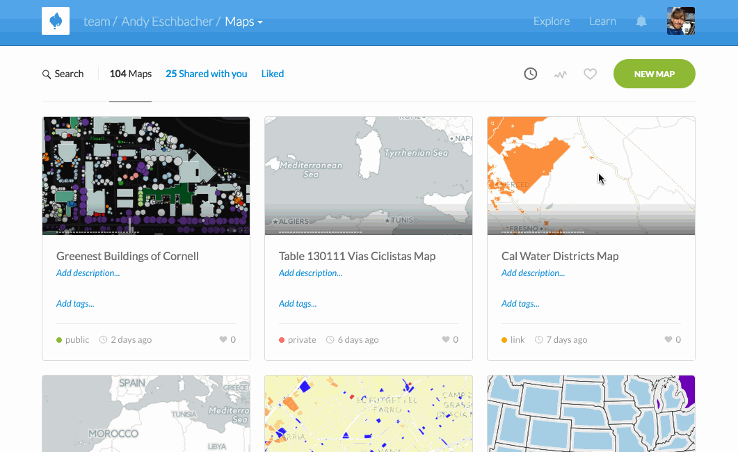 cartodb.createLayer(map, 'https://team.cartodb.com/u/eschbacher/api/v2_1/viz/5f709a68-f9e3-11e4-abb5-0e4fddd5de28/viz.json')