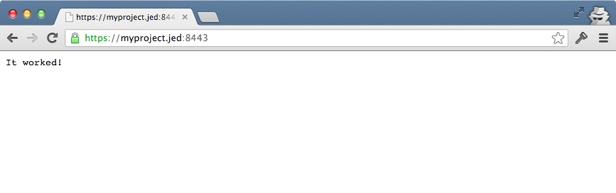 Now that OS X knows that our self-signed certificate is legit, let's spin up an HTTPS server to make sure it all works. You can use Apache or Nginx or whatever you like, but here we'll use nodejs: