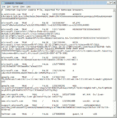 Нажимаем Enter и получаем содержимое cookies.txt