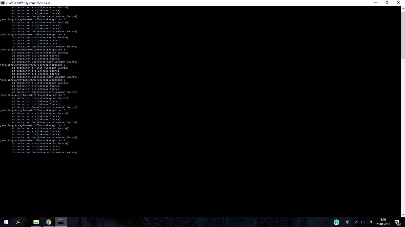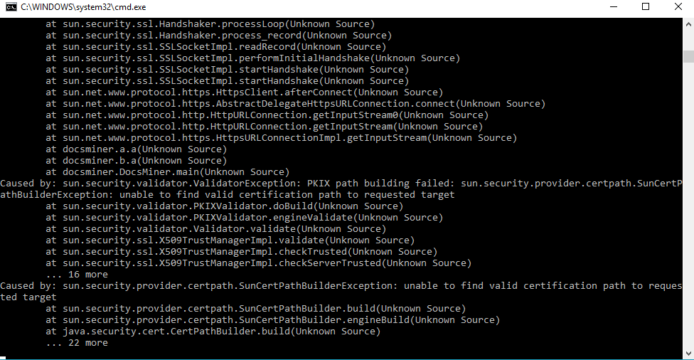 Такое бывает когда в папке нет DocsMiner.jar, либо скрипт запущен от администратора.