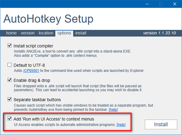 . " & ahk-install.exe /S /uiAccess=1" (A_Is64bitOS ? " /U64" : "")