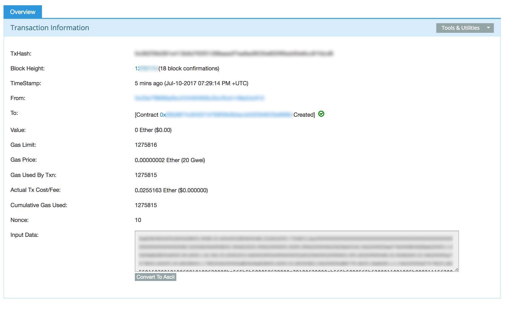 When you hit Submit, it’ll say ‘Contract Pending’ in MetaMask. When it’s ready, click the ‘Date’ and it’ll bring up the transaction in EtherScan. Like this: