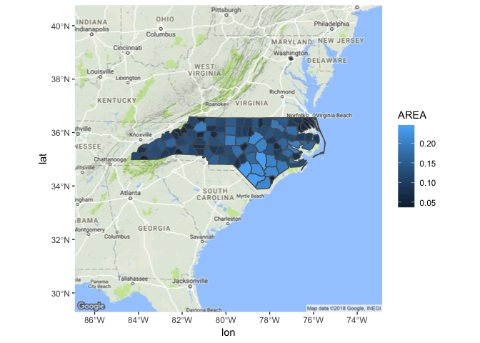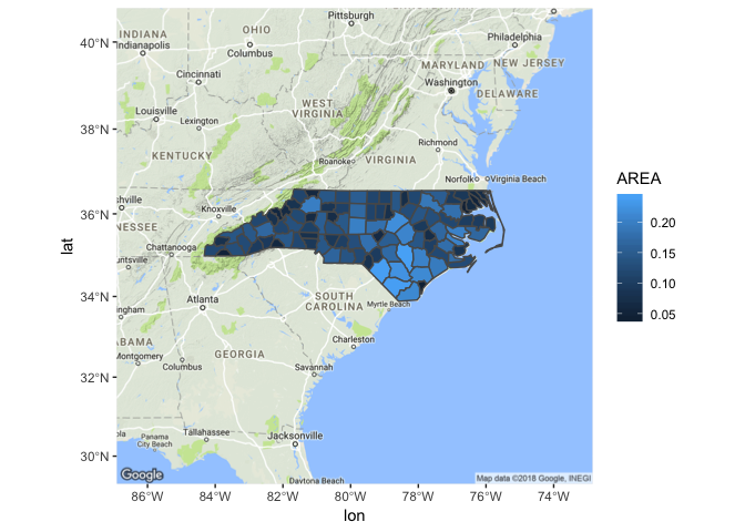 geom_sf(data = st_transform(nc, 3857), aes(fill = AREA), inherit.aes = FALSE)
