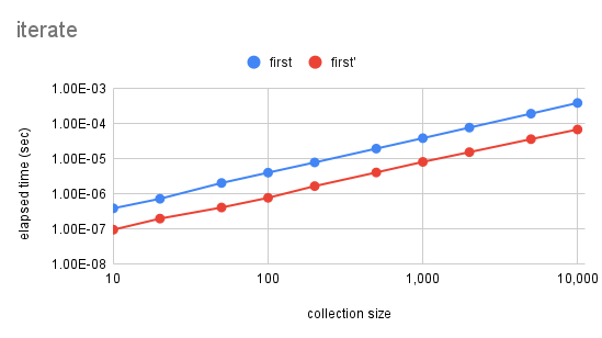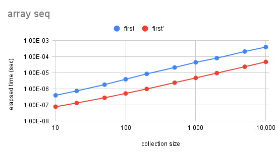 (cr/quick-bench (first' (filter #(>= % n)) (seq xs))) |