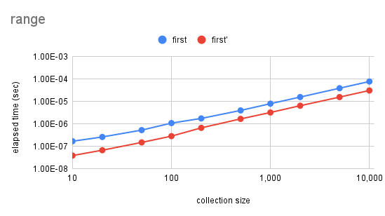 (cr/quick-bench (first' (filter #(>= % n)) (range m))) |