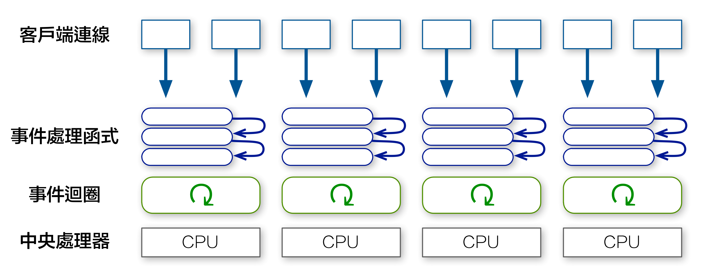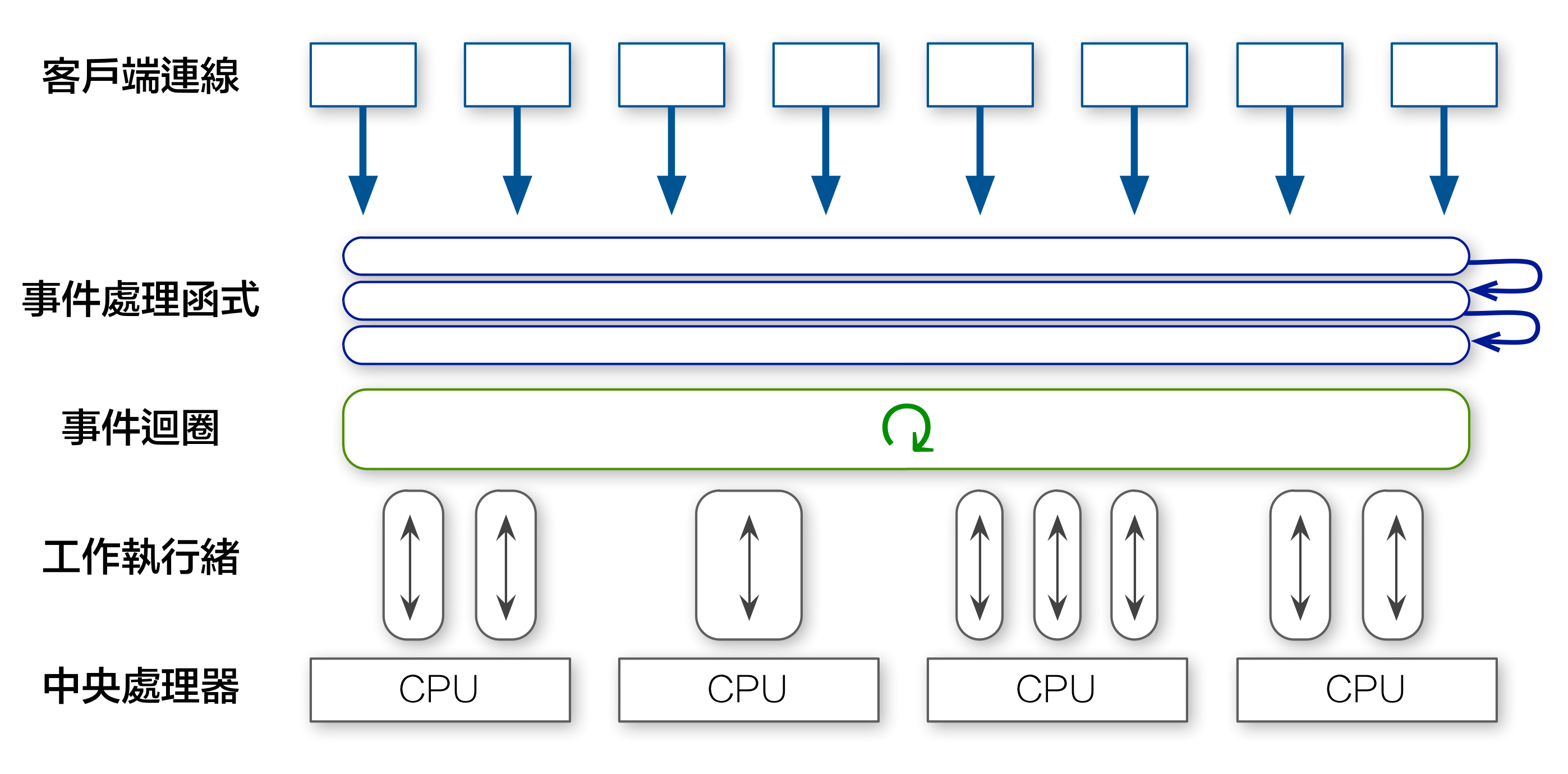 此外,如果叢集裡的每個行程都在忙著處理 CPU 運算,新來的連線仍然會被卡住。
