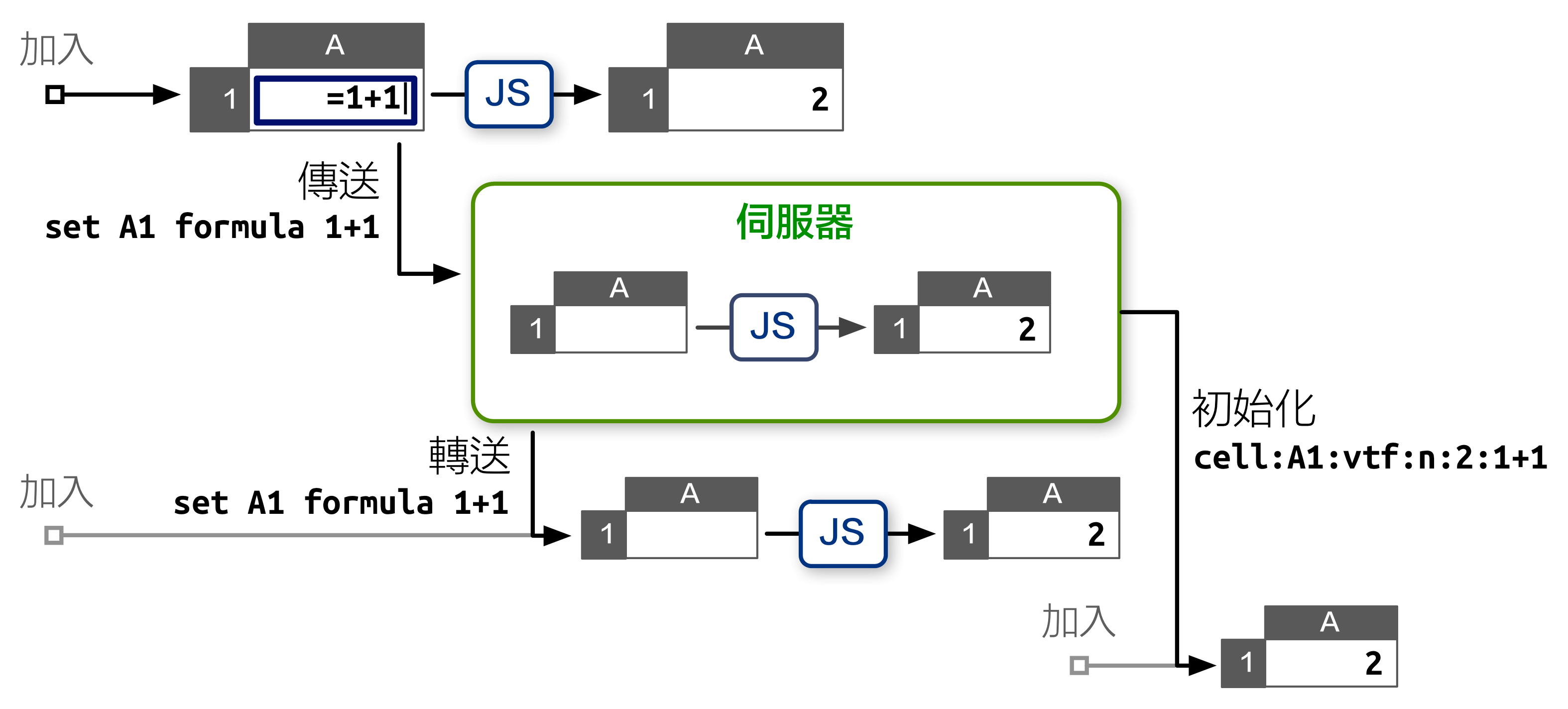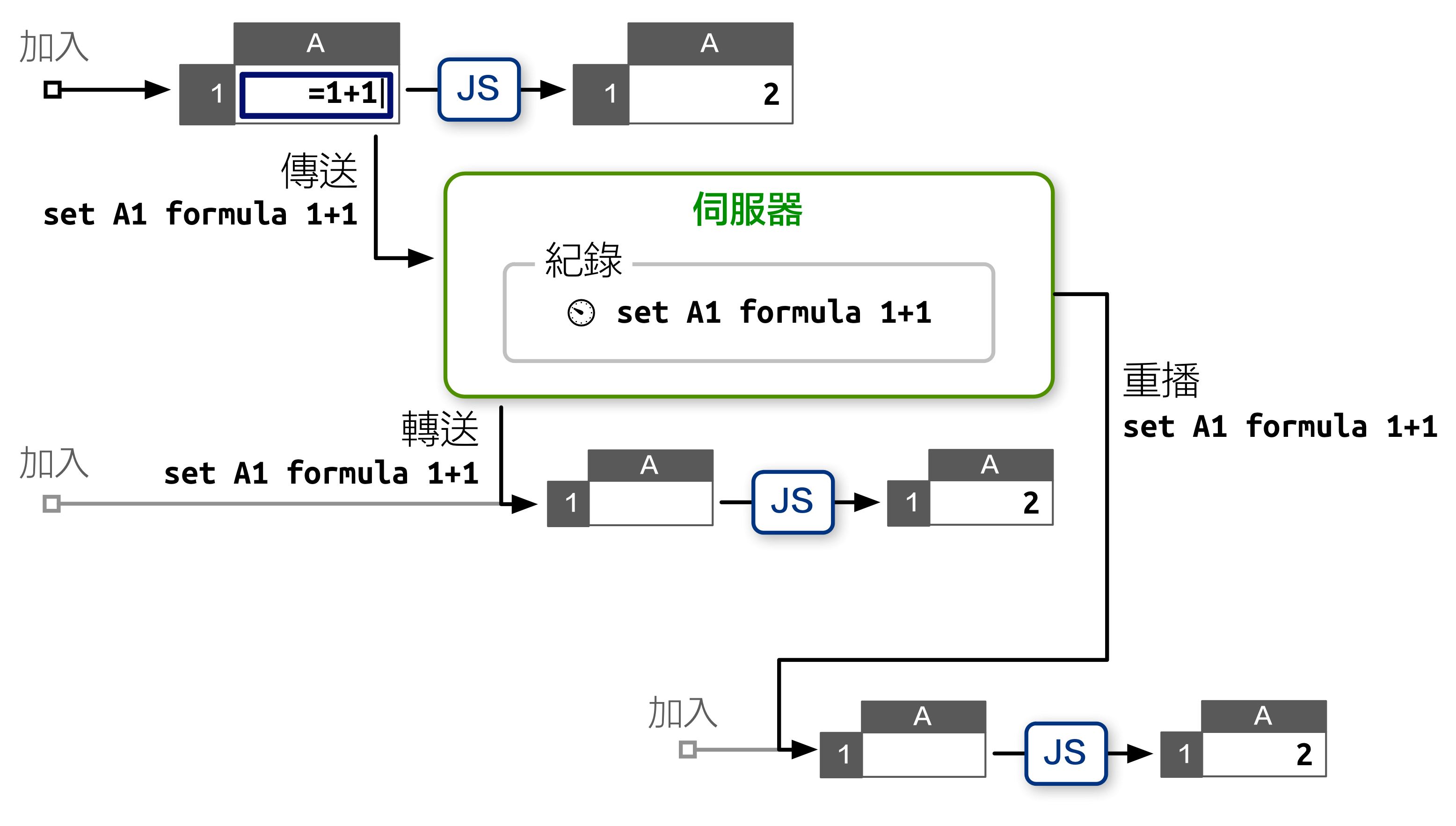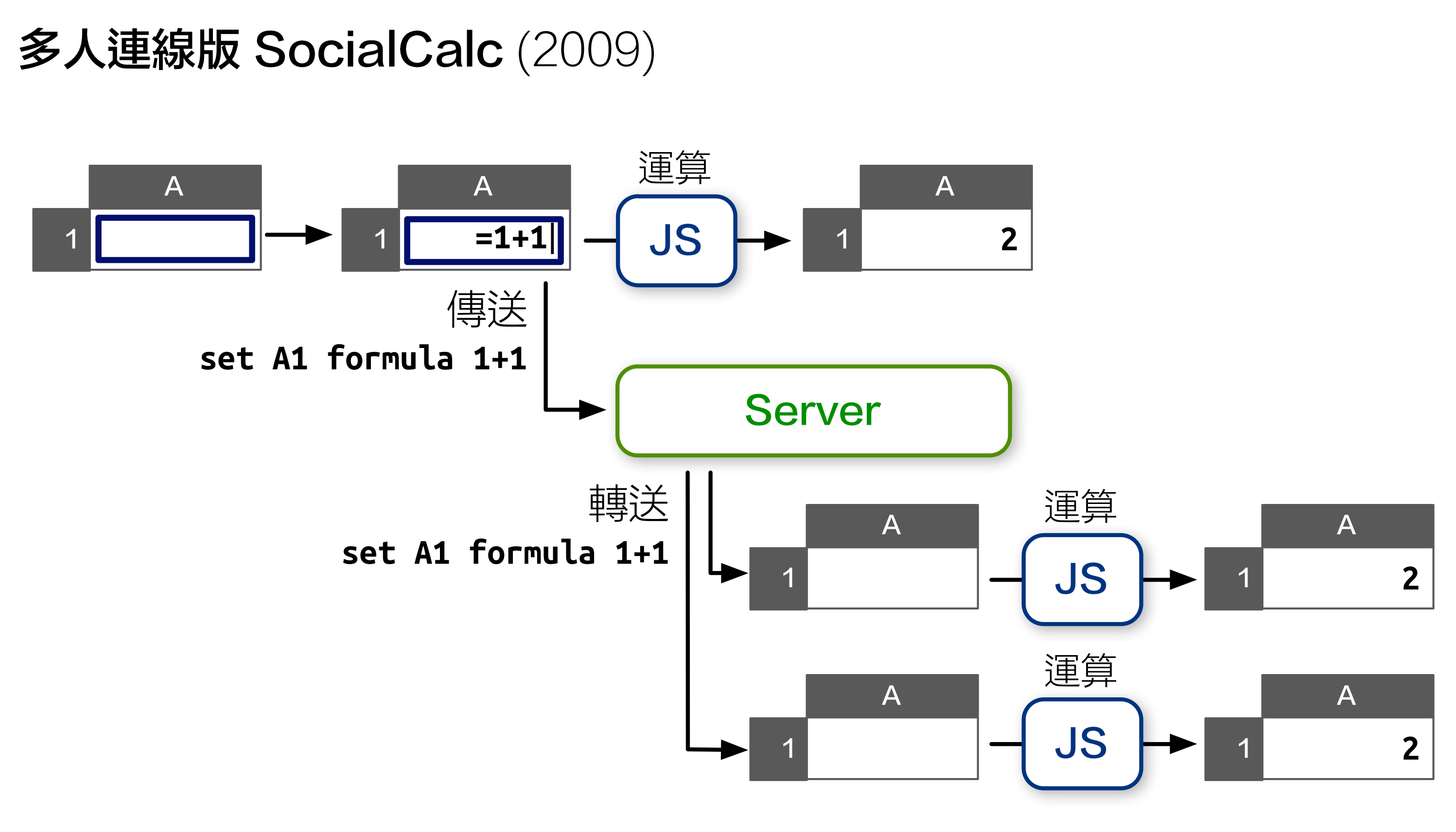 《開源應用程式架構》的最後一段裡,我們介紹了如何透過一種簡單、類似聊天室的架構,來進行試算表同步協作:
