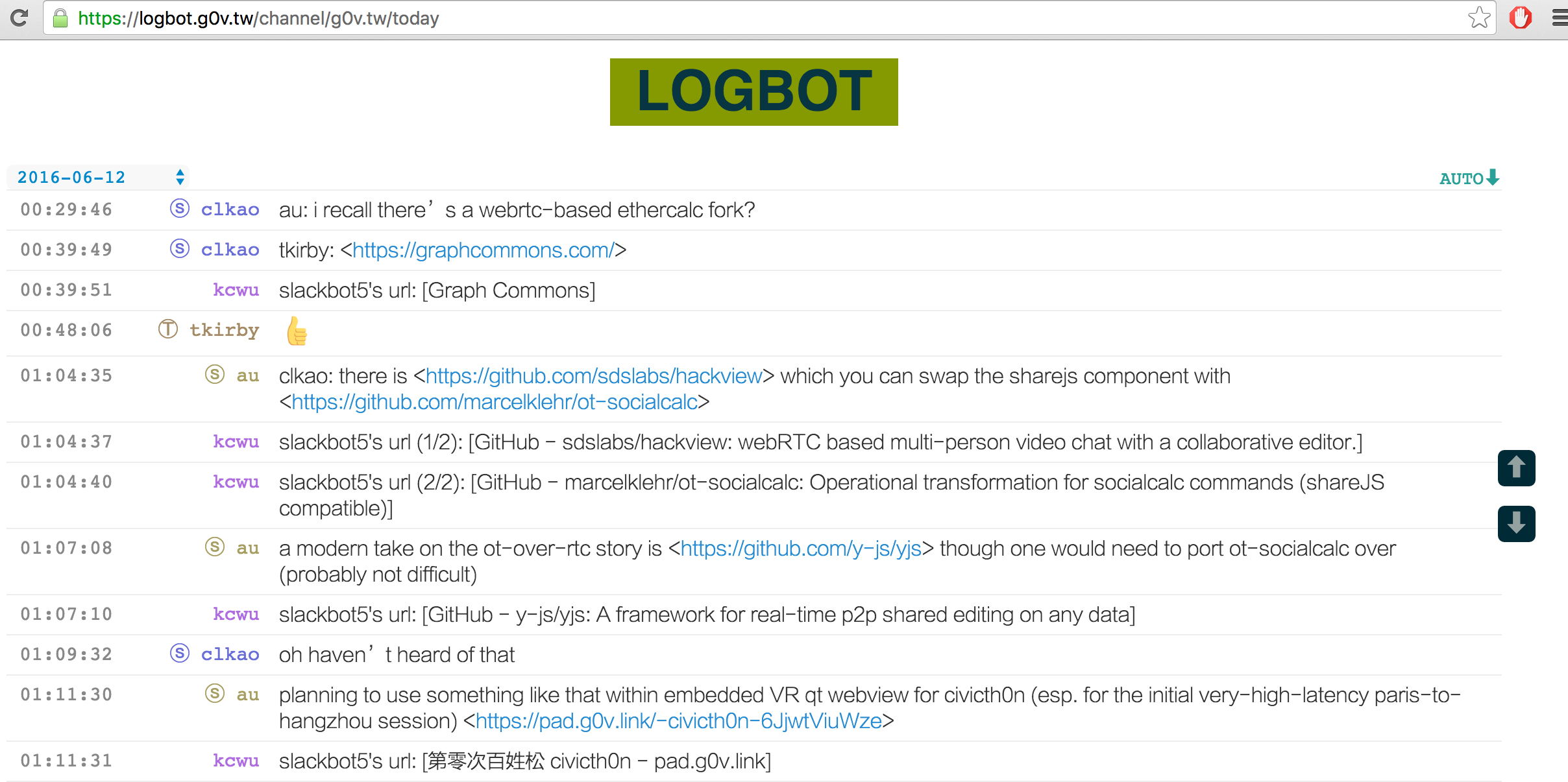 Audrey: demonstrating logbot, one of the g0v internal coordination tools