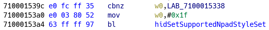 On firmwares 9.0.0+, the HID shared memory won't update values for the controller libnx uses, unless it is explicitely specified as supported. The fix is as simple as changing the bitflag passed to nn::hid::SetSupportedNpadStyleSet, from 0x1f to 0x6000001f (see here).