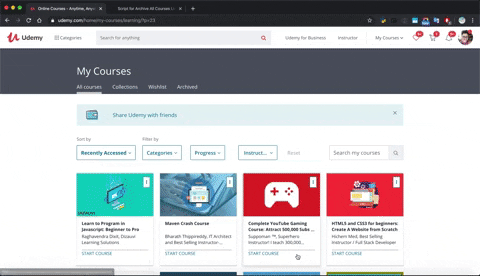 Tried to archiving courses that you don't want? Now I have about 26 pages, each page has 9 courses that I claim for free. Right now I don't want it. Hence, I made script that use to archive courses just single copy and paste.