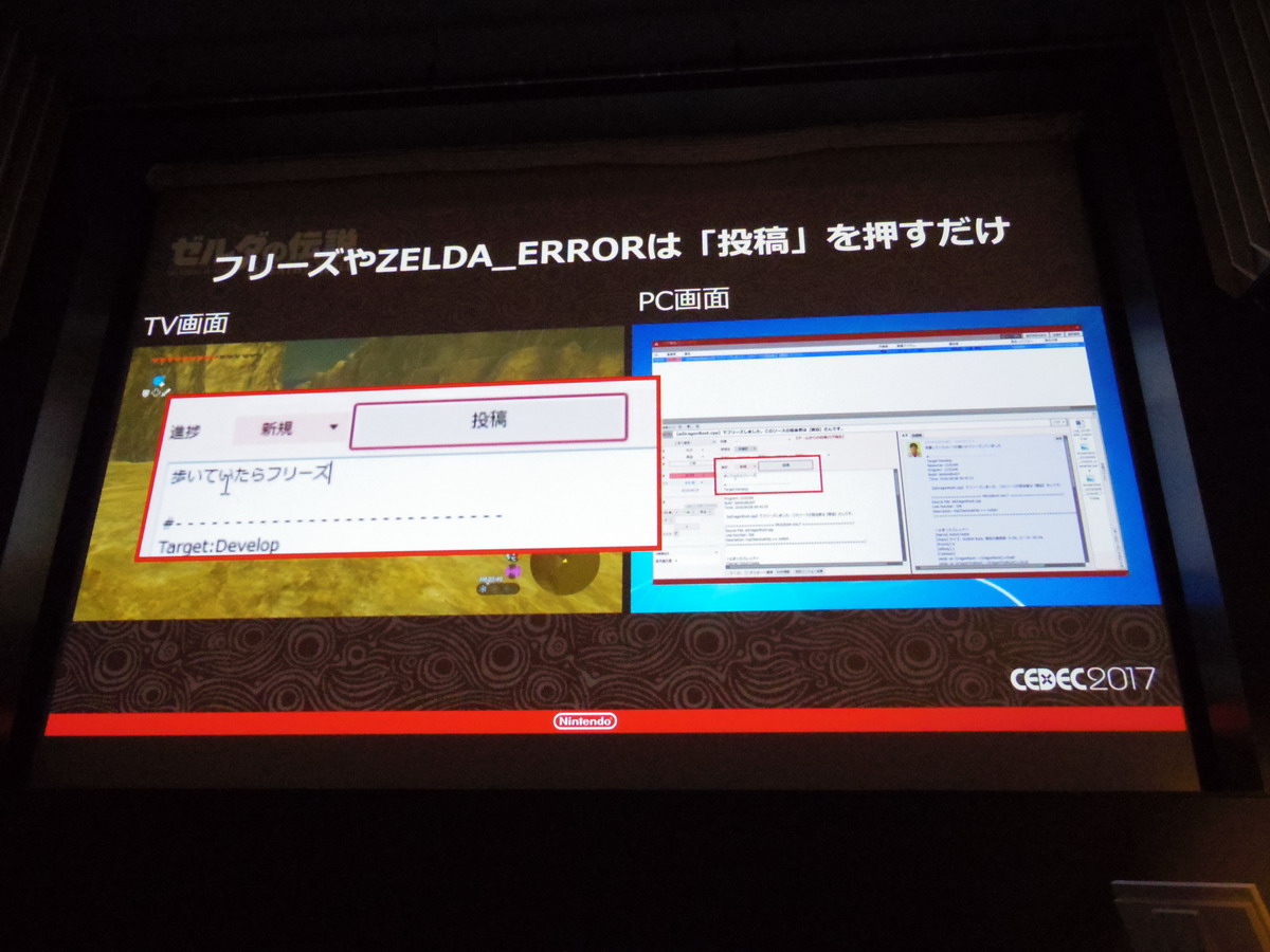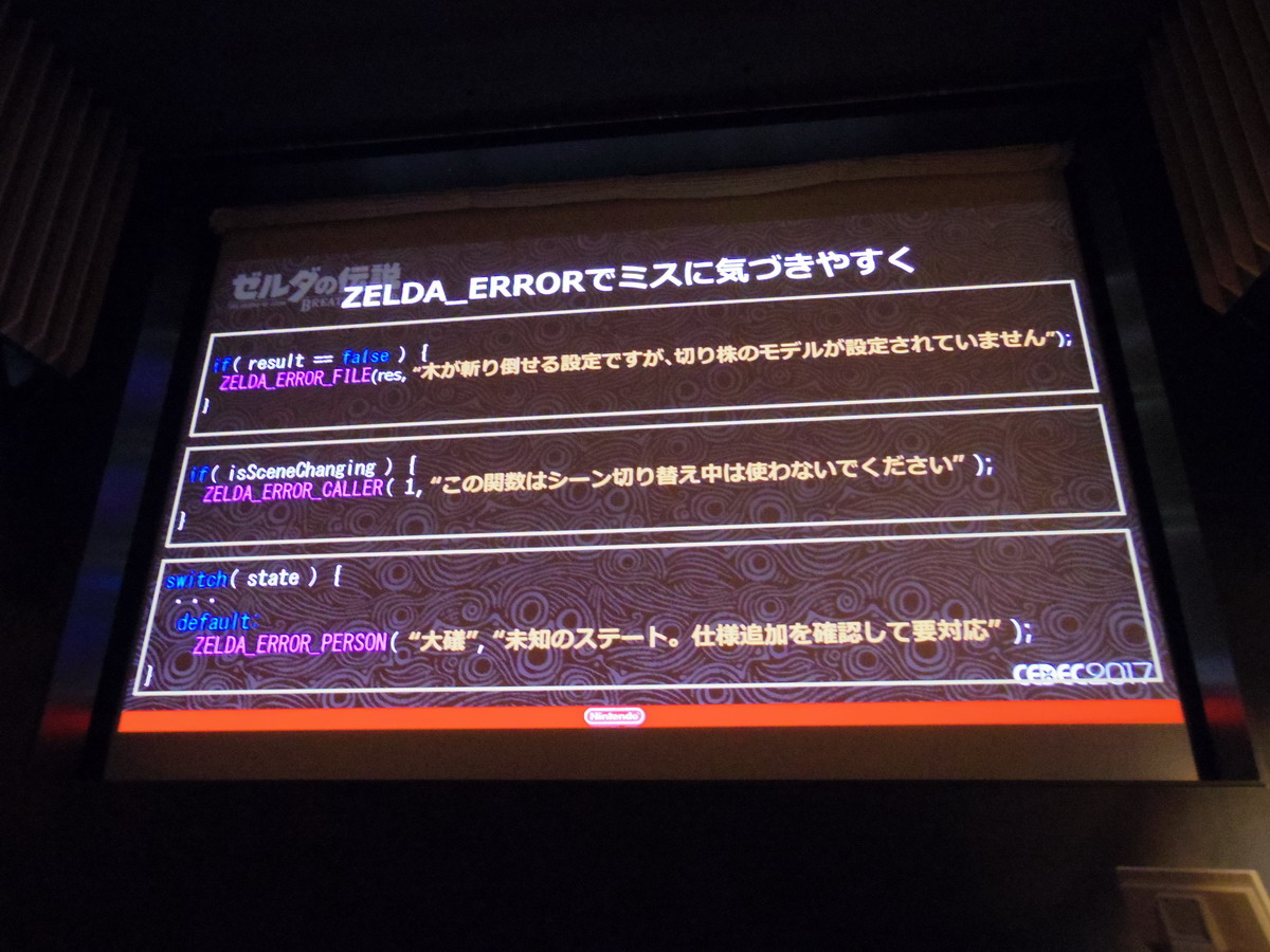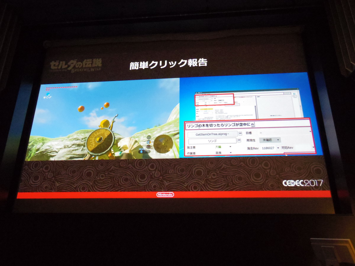 They merged their bug management and task management systems into the Zelda Editor and held a team wide meeting to explain how to use it. They also implemented a function they called “ZELDA_ERROR” to make problems more noticeable. The programmers originally created this function in the interest of preventing freezes, and in the end they had 6000 different ZELDA_ERRORs strewn throughout the game. They also implemented hot reload so data could be fixed on the fly. Being able to report bugs from the game was a great help for debugging, and would automatically log the player’s coordinates, scene switches, event and dungeon information. Based on that info the person who found the bug could figure out who they should send the bug to.