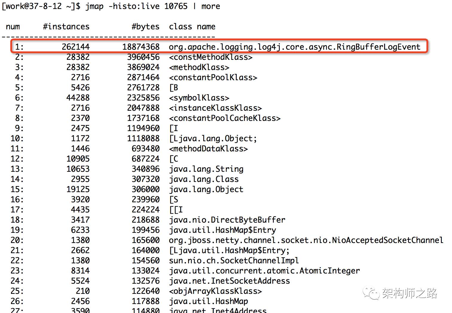 上图中占内存最多的对象是RingBufferLogEvent,共占用内存18M,属于正常使用范围。