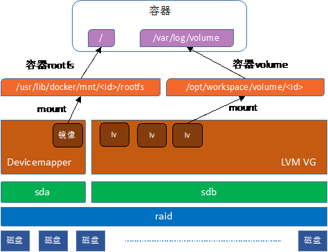 为了解决本地磁盘数据卷限容能力弱的问题,我们开发了 LVM Volume 方案。该方案在宿主机上创建一个 LVM VG 作为 Volume 的存储后端。创建容器时,从 VG 中创建一个 LV 当作一块磁盘,挂载到容器里。这样 Volume 的容量便由 LVM 的 LV 加以强限制,得益于 LVM 机强大的管理能力,我们可以做到对 Volume 更精细、更高效的管理。例如,我们可以很方便地调用 LVM 命令查看 Volume 使用量,通过打标签的方式实现 Volume 伪删除和回收站功能,还可以使用 LVM 命令对 Volume 做在线扩容。