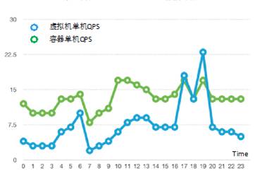 图 7. 某业务虚拟机和容器平均单机 QPS