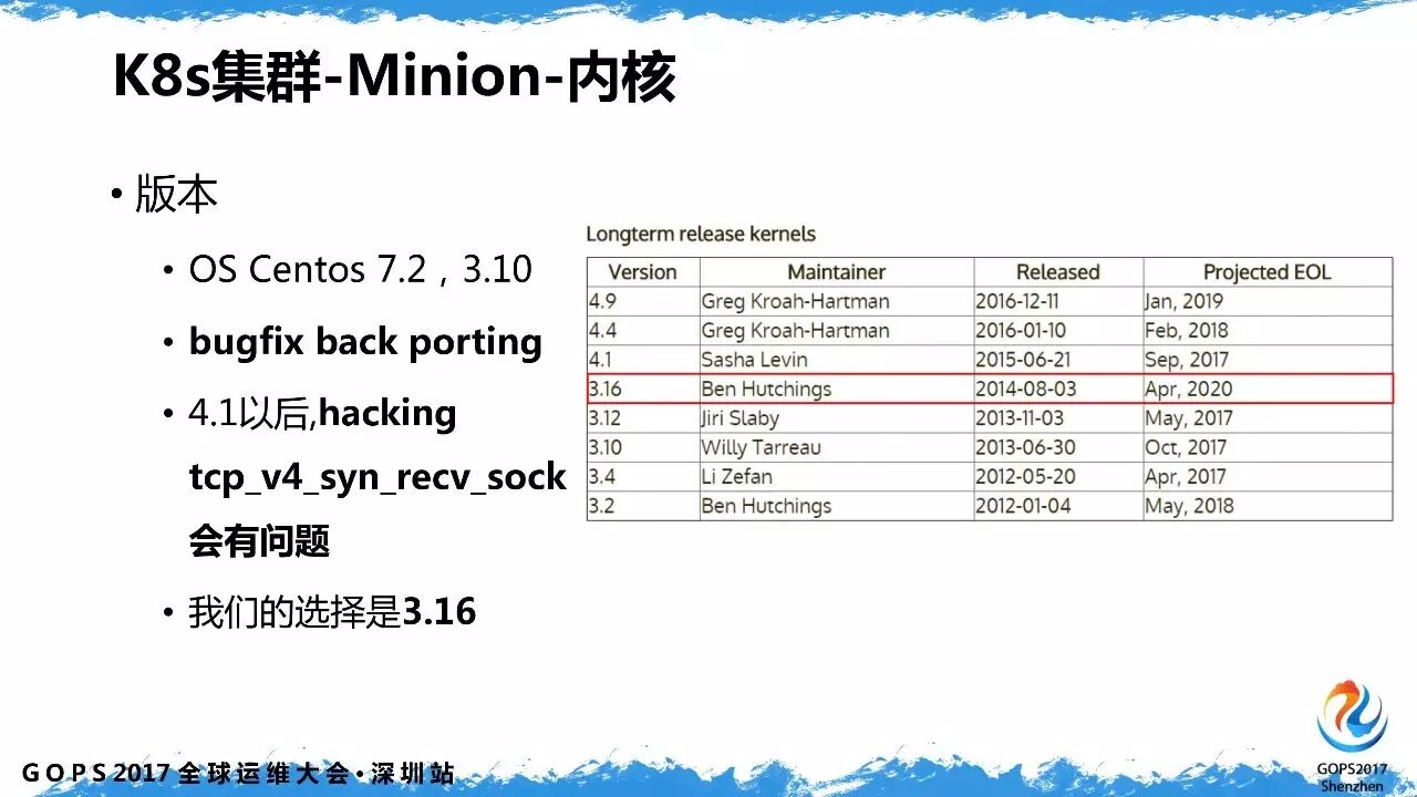 默认内核是3.10版本,长期维护的内核版本的是我们需要的。而且考虑到要对某些内核模块做 hacking,4.0及以上变化较大,hackingtcp_v4_syn_recv_sock 存在问题,所以我们最终选择了自行编译 3.16内核。