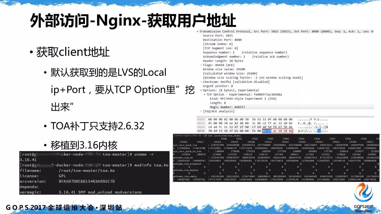 开源版本的 TOA 一直没有升级,为此我们将其移植到 3.16,对于大多数业务来说,客户端 ip 地址是不可或缺的。