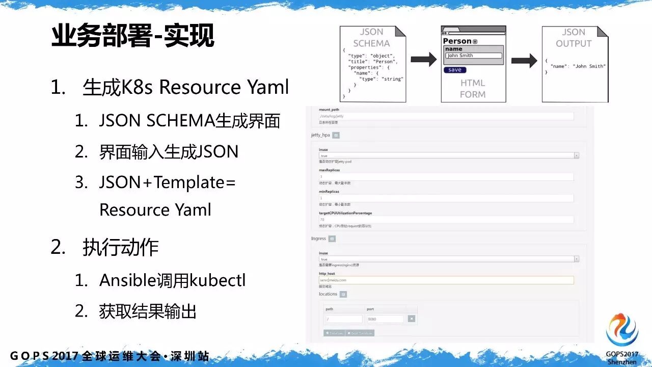 利用 ansible 调用 kubectl 来实现自动化部署。实现了部署进度,发布历史管理,模板化部署。对于多集群管理,ansible 通过切换不同 k8s 集群的 context,发布业务到不同机房。