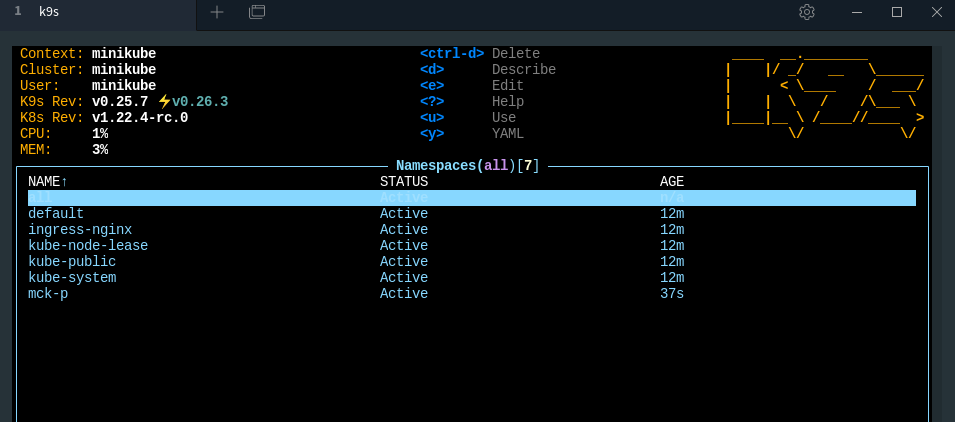 Inside of K9s, go to the mck-p namespace via selecting it