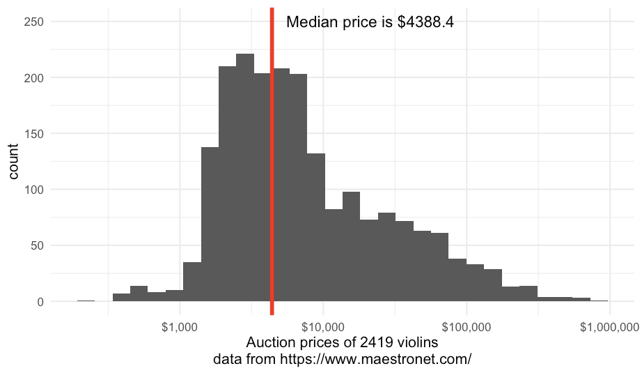| xlab(str_glue('Auction prices of {nrow(get_pages_results_prices)} violins\n data from https://www.maestronet.com/')) | |