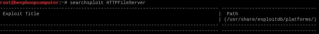 Lets run a simple search for the found program. searchsploit HTTPFileServer