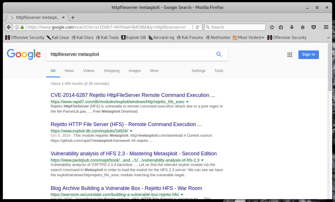 Let's try another search, including "metasploit" this time.
