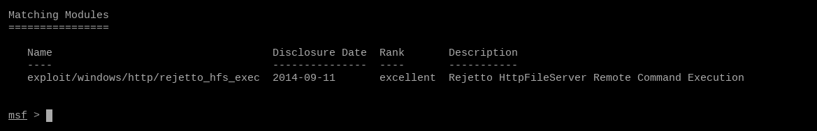 From our results, we are given the path exploit/windows/http/rejetto_hfs_exec.